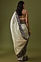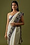 Featuring a white saree in organic cotton silk base with sequins, resham, beads hand embellishments. It is paired with a matching unstitched blouse.