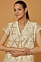Featuring a white dress in organic silk base with triangular patchwork and zari hand embroidery.