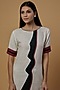 Featuring a white dress in organic silk base with black and red patch.