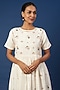 Featuring a white gathered dress in organic peace silk base with thread and mirror hand embroidery.