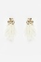 Featuring a pair of gold finish feather drop earrings studded with zircons and beads, set in brass.