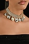 Featuring a gold finish collar necklace studded with crystals, set in brass. Add a touch of sparkle to your ensemble, perfect for wedding, sangeet ceremonies, or festive celebrations.