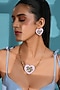 Featuring a gold finish lilac enameled heart pendant necklace studded with crystals, set in brass. Perfect for cocktail hours, parties, and glamorous nights out, this jewellery is a wardrobe must for those who love to shine effortlessly.