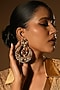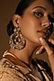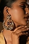 Featuring a pair of gold finish ornate chandelier earrings studded with crystals, pearls and beads, set in brass. Add a touch of sparkle to your ensemble, perfect for wedding, sangeet ceremonies, or festive celebrations.