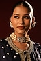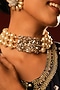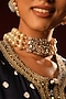 Featuring a gold finish choker necklace studded with crystals and pearls, set in brass. Add a touch of sparkle to your ensemble, perfect for wedding, sangeet ceremonies, or festive celebrations.
