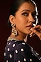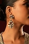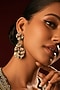 Featuring a pair of gold finish dangler earrings studded with bead, crystals and pearls, set in brass. Add a touch of sparkle to your ensemble, perfect for wedding, sangeet ceremonies, or festive celebrations.