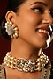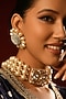 Featuring a pair of gold finish stud earrings studded with crystals and pearls, set in brass. Add a touch of sparkle to your ensemble, perfect for wedding, sangeet ceremonies, or festive celebrations.