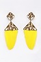Featuring a pair of gold finish feather earrings studded with yellow zircons, set in brass.