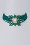 Featuring a gold finish choker necklace studded with green crystals, set in brass.