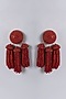 Featuring a pair of gold finish tassel earrings studded with red crystal and beads, set in brass.