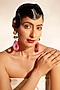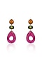 Featuring a pair of pink teardrop dangler earrings with resin and crystals, set in brass. Perfect wear for festive occasions or wedding ceremonies.