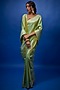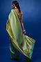 Featuring a parrot green saree in brocade banarasi base with floral patterns and a geometrical border. It is paired with an unstitched blouse piece.