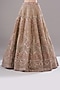 Featuring a dull green lehenga in pure raw silk base with zardosi and french knots hand embroidery. It is paired with a matching blouse and a net dupatta. Accentuate with statement jewellery and heels for a wedding or engagement ceremony.