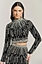 Featuring a black cropped top in mesh base with swarovski and bead embellishments. It is paired with a skirt. Style it with dangler earrings and heels for a cocktail or evening party.