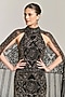 Featuring a black gown in mesh base with a halter neckline, sequins and glass beads embroidery, including an attached sheer cape. Accentuate it with zircon earrings, strappy heels and a clutch for evening wear, date nights or cocktail parties.