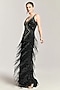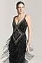 Featuring a midnight black gown in mesh base with a v-neckline, beads embellishments and fringe detail. Accentuate it with zircon earrings, strappy heels and a clutch for evening wear, date nights or cocktail parties.