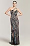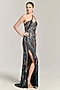 Multi-Colored Mesh Sequin Embroidered One-Shoulder Gown