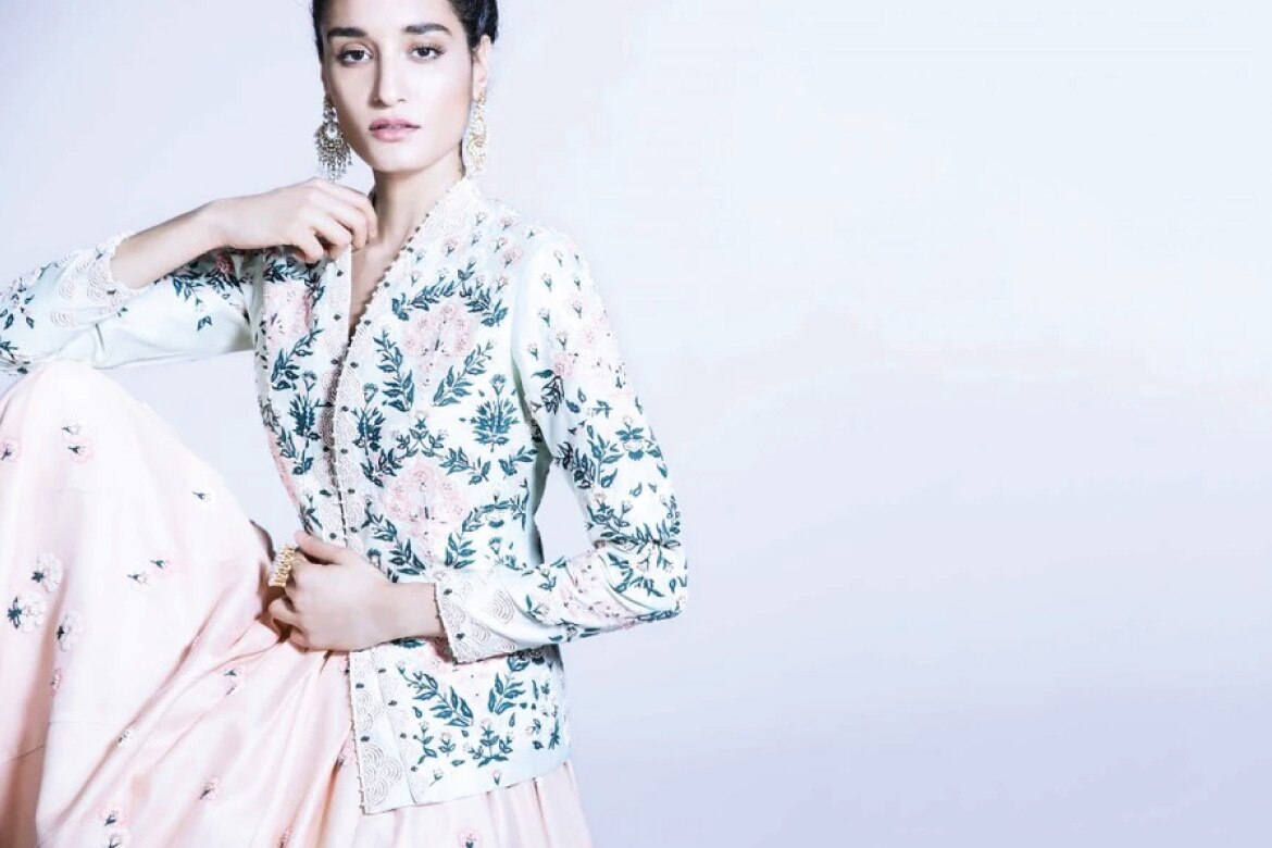 AM:PM by Ankur and Priyanka Modi are known for their fluidic silhouettes in vibrant hues, that appeal to the new-age women. From lime green and bright yellow to vivid pink, you will find colourful printed ensembles that work great for the festive season.
