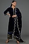 Featuring a deep blue kurta in velvet base with hand embroidery. It is paired with scalloped pants and a dupatta. Accentuate it with dangler earrings and heels for a festive occasion.