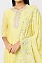Featuring a yellow kurta in chennur silk base with sequins embroidery. It is paired with matching pants and a floral printed dupatta.