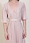 Featuring a blush pink wrap midi dress in crinkle polyester base with bell sleeves and a belt.