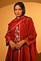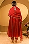 Featuring a red kurta in chanderi base with thread embroidery and foil boota detail. It is paired with pants and an organza dupatta having gota detail. Accentuate it with dangler earrings and heels for a festive occasion.