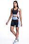 Featuring a black padded crop top in nylon elastane blend base with color blocking. It is paired with matching high-waisted biker shorts.