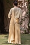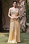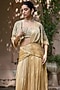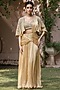 Featuring a beige and gold cape in satin chiffon base. It is paired with a draped saree and a blouse.