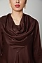 Featuring a brown asymmetric dress in tencel base with attached cowl.