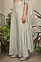 Featuring a light mint green cape in georgette base with chikankari and mirror embroidery. It is paired with flared pants and a bustier. Style the look with dangler earrings and a maang tikka for the wedding ceremony. Perfect wear for a bridesmaid.