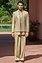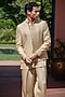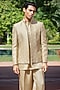 Featuring a beige gold indowestern jacket in chikankari base. It is paired with a modal satin kurta and pants. Style it with mojaris for a festive occasion, reception, wedding, sangeet or engagement ceremony, exuding traditional charm and elegance.