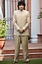 Beige Gold Chikankari Indowestern Jacket Set