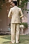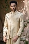 Featuring a beige-gold indowestern jacket in modal satin base. It is paired with a kurta and pants. Style it with a loafers for a wedding, engagement or sangeet ceremony.