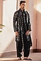 Featuring a black kurta in chikankari base. It is paired with rayon salwar pants and a georgette dupatta. Style it with mojaris for a festive occasion, wedding, sangeet or engagement ceremony, exuding traditional charm and elegance.