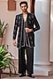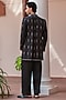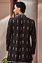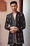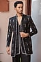 Featuring a black indowestern jacket in modal satin base. It is paired with a kurta and pants. Style it with a mojaris for a festive occasion, wedding or sangeet ceremony.
