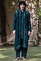 Featuring a bottle green kurta in dupion silk base. It is paired with rayon salwar pants and a georgette dupatta. Style it with mojaris for a festive occasion, mehendi, wedding, sangeet or engagement ceremony, exuding traditional charm and elegance.