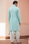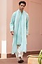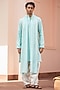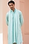Featuring a cruise-colored kurta in chikankari base. It is paired with off-white tussar salwar pants and a georgette dupatta. Style it with mojaris for a festive occasion, wedding, sangeet or engagement ceremony, exuding traditional charm and elegance.