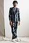 Featuring a dark grey blazer in linen base with tie-dye print. It is paired with matching pants and a bamboo blend short kurta.