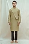 Featuring a green kurta in cotton linen base. It is paired with black pants. Accentuate it with kolhapuris or embroidered juttis for an elegant yet easy-going look, perfect for pooja ceremonies, festive gatherings or mehendi functions.