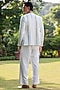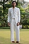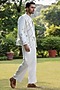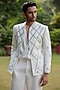 Featuring an ivory indowestern jacket in modal satin base. It is paired with a draped shirt, kamarbandhand pants. Style it with shoes for a wedding, engagement or sangeet ceremony.