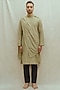Featuring a light green kurta in cotton base. It is paired with cotton linen off white pants. Accentuate it with kolhapuris or embroidered juttis for an elegant yet easy-going look, perfect for pooja ceremonies, festive gatherings or mehendi functions.