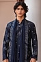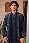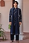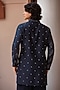 Featuring a navy blue kurta in chanderi base. It is paired with rayon salwar and a georgette dupatta. Style it with a mojaris for a festive occasion, an intimate pooja, wedding or engagement ceremony.