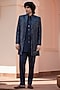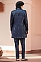 Featuring a navy blue indowestern jacket in chikankari base. It is paired with a terry wool kurta and pants. Style it with mojaris for a festive occasion, reception, wedding, sangeet or engagement ceremony, exuding traditional charm and elegance.