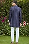 Featuring a navy blue sherwani in georgette base with chikankari embroidery. It is paired with a shirt and terry wool suiting pants. Perfect wear for a wedding or engagement ceremony. Perfect wear for sangeet ceremonies.