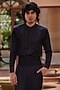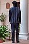 Featuring a navy blue indowestern jacket in modal satin base. It is paired with a draped shirt, a Kamarbandh and pants. Style it with shoes for a wedding, engagement or sangeet ceremony.