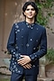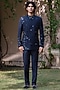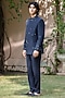 Featuring a navy blue bandhgala in wool suiting base. It is paired with pants. Style it with shoes for a festive occasion, reception, sangeet or engagement ceremony.