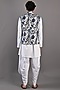 Featuring an off-white and blue nehru jacket in cotton satin base with digital print. It is paired with an off-white kurta and tulip pants. Perfect wear for a wedding, sangeet or engagement ceremony.