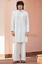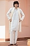 Featuring an off-white kurta in chikankari base. It is paired with tussar salwar pants and a georgette dupatta. Style it with mojaris for a festive occasion, wedding, sangeet or engagement ceremony, exuding traditional charm and elegance.