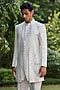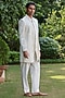 Featuring an off-white indowestern jacket in tussar base. It is paired with pants. Style it with loafers for a reception, wedding, sangeet or engagement ceremony.