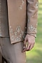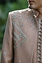 Featuring a rose gold indowestern jacket in modal satin base. It is paired with a kurta and pants. Style it with a loafers for a wedding, engagement or sangeet ceremony.